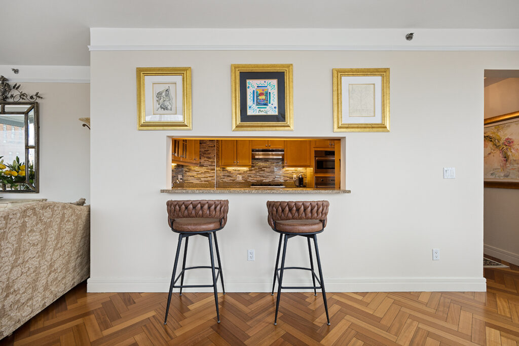 室内配有人字形木地板,并设有洗衣机和烘干机。厨房配备Sub-Zero及Viking高端电器,兼具性能与品质。